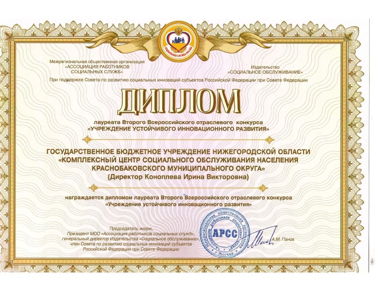 ГБУ «КЦСОН Краснобаковского муниципального округа» принял участие во Втором Всероссийском отраслевом конкурсе «Учреждение устойчивого инновационного развития».