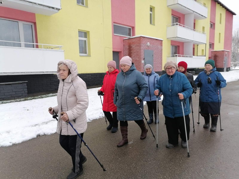 В отделении «Специализированный жилой дом для граждан пожилого возраста и инвалидов» продолжает свою работу клуб по скандинавской ходьбе «РИТМ». Пешие прогулки в стиле скандинавской ходьбы являются полезными и доступными в плане физической нагрузки и сохранения здоровья. Ходьбой можно заниматься везде, в любом месте, в любом возрасте, в любое время года и в любую погоду. Ходьба не предполагает спортзалов и дорогостоящих тренажеров. Однако польза от пеших прогулок вполне сравнима с занятиями в тренажерном зале с личным тренером.