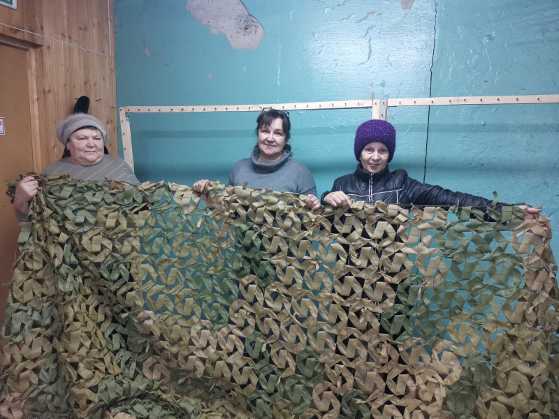 Социальные работники п. Шеманиха изготовили еще одну маскировочную сеть для отправки в зону действия СВО