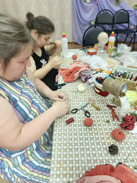 Отдыхающие отделения дневного пребывания изготовили осенний топиарий "Парящая чашка".