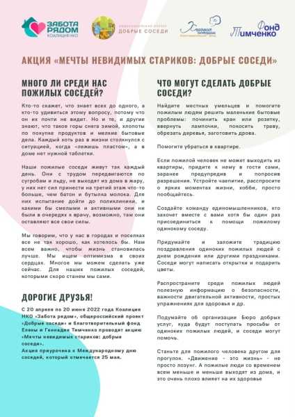 Приглашаем присоединиться к акции "Мечты невидимых стариков: добрые соседи"
