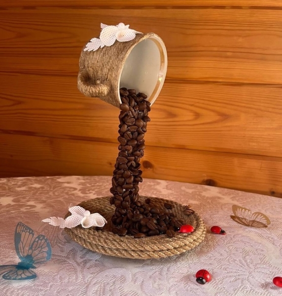 Наши подопечные из мини-клуба «Сударушка» вместе с соцработником решили создать необычную поделку из зерен кофе.