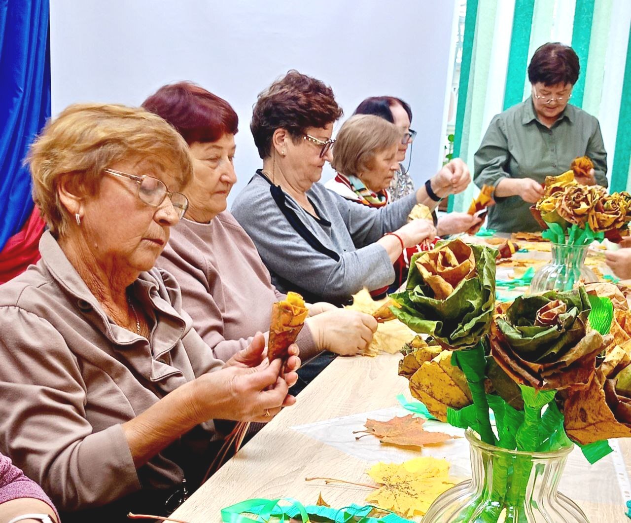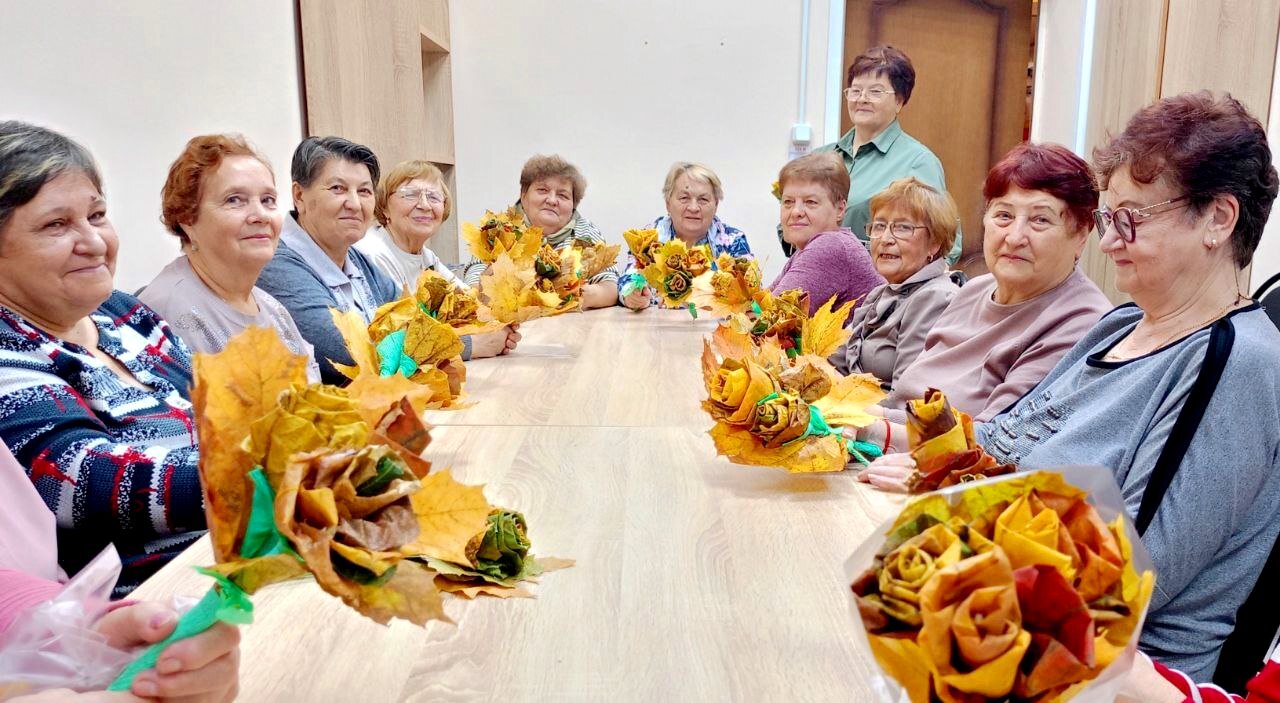 В рамках месячника пожилого человека в нашем Центре состоялся увлекательный мастер-класс по созданию роз из осенних листьев. Мероприятие прошло в тёплой и творческой атмосфере, участники с большим удовольствием погрузились в мир рукоделия, создавая яркие и уникальные цветы!