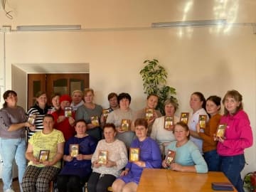 Методичное перебирание зернышек и поочередное прикладывание их на панно успокаивает и помогает сосредоточиться. Заведующие и социальные работники ГБУ «КЦСОН Тонкинского муниципального округа» с интересом взялись за изготовление панно и остались довольны результатом.