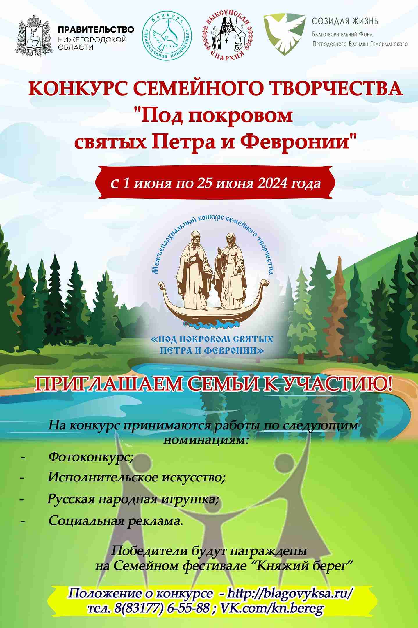 Конкурс семейного творчества «Под покровом святых Петра и Февронии» начнётся 1 июня, участниками которого могут стать жители всей Нижегородской области.