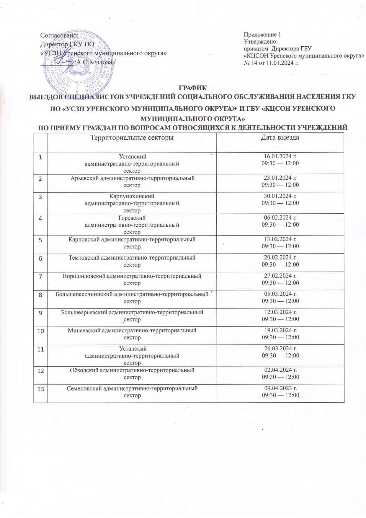 График выездов специалистов ГКУ НО «УСЗН Уренского муниципального округа» по приему граждан на меры социальной поддержки.